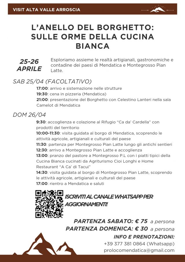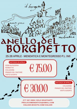 Per informazioni: Pro Loco di Mendatica +39 377 381 08 64 e-mail prolocomendatica@gmail.com | Pro Loco di Montegrosso Pian Latte +39 379 196 02 53 e -mail info@prolocomontegrossopl.it