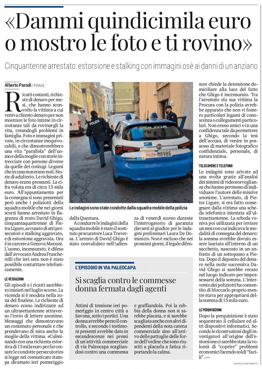 Riceviamo – L’uomo arrestato a Pietra Ligure si chiama Davide Ghigo, 54 anni, coniugato – stimata famiglia che aveva gestito un’edicola sul viale della Repubblica – dirigente di ente pubblico che opera nel comune di Finale Ligure.