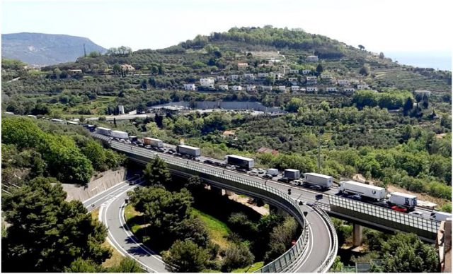 Come se non fossero bastate le precedenti, ancora una volta è stata data la dimostrazione non della “problematicità” ma, ormai, della drammaticità della mobilità del Ponente Ligure. Chi l’8 Aprile avesse percorso l’Autostrada A10 in direzione Ventimiglia, avrebbe notato che, alla propria sinistra, nell’opposta direzione per Genova, “giaceva” un ininterrotto serpentone di camion, Tir, rimorchi, bisarche tali che sembravano uno attaccato all’altro; e, nella corsia a fianco, un altro serpentone parallelo di autovetture, camper, furgoni, pullman… Mezzi che condividevano il comune destino di essere tutti praticamente immobili sotto il Sole. Questo enorme serpentone si esauriva (o cominciava…) solo nei pressi di Albenga